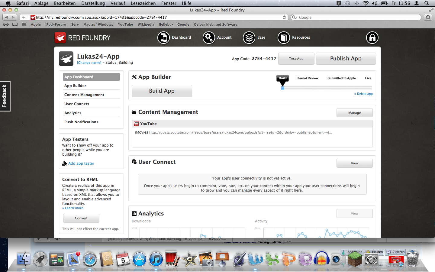 • Ja ich besitze einen Mac aber ich habe nichts dergleichen vor und ich weiß auch nicht wie das gehen soll also ist das eigl erledigt finde ich zumindestens. Falls es iWilli interessieren sollte ich mache meine Apps über Red Foundry das kann er ja mal googlen