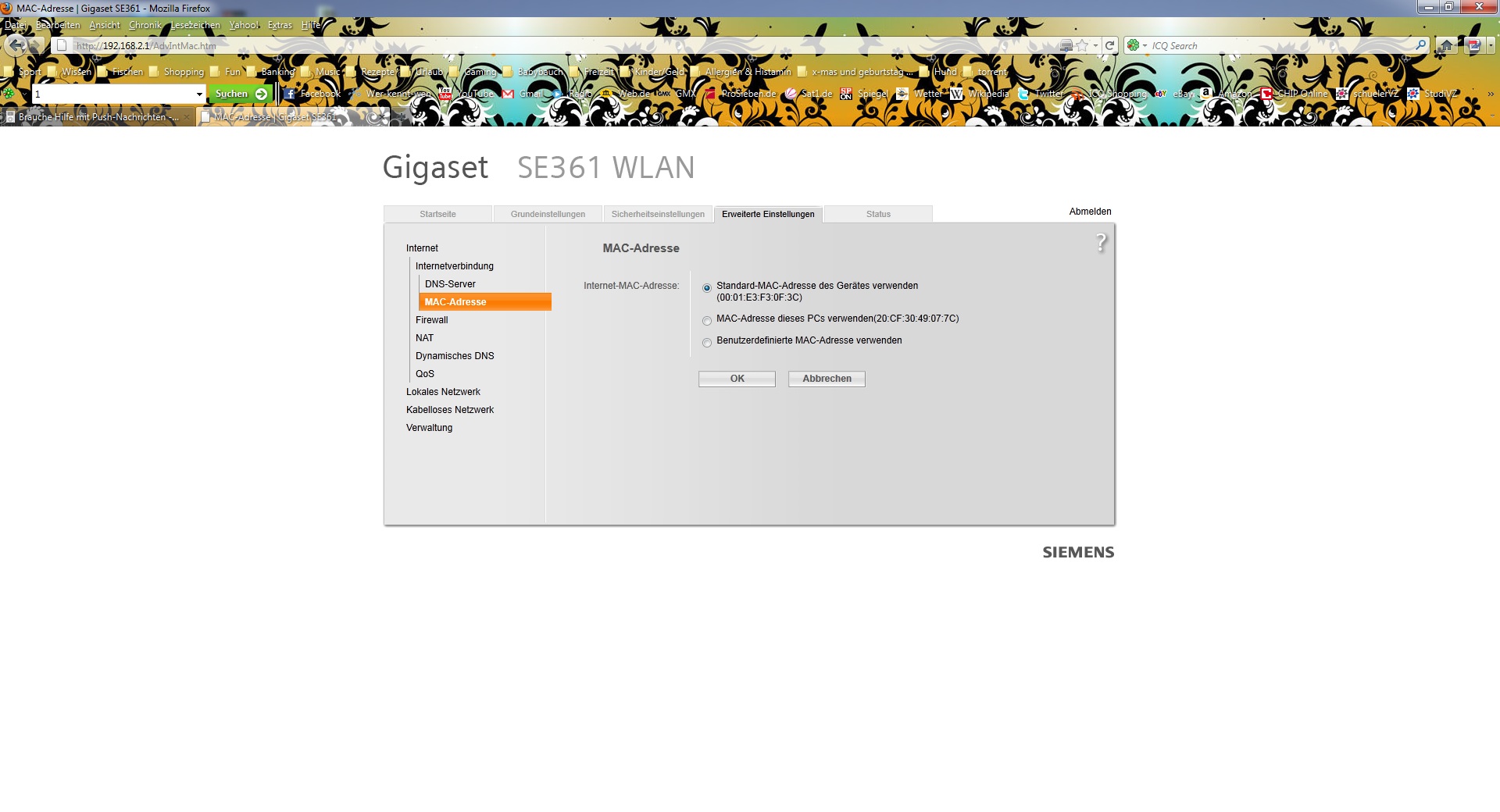 Hallo, also ich komm da nicht so klar mit dem router setup. hab zwar die mac-adresse von dem kabellosen client gefunde, kann da aber im port-forwarding nichts auswählen. Es müsste die mac-adresse vom ipod sein weil sonst kein bekannter client vorhanden ist. Hier sind noch die screens um euch das mal anzuschauen, danke und hoffe auf eine Lösung.